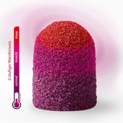 To protect patients with neuropathy, we use the German Lukas Podologic thermo-abrasive cap. During sanding of nails or calluses, this innovative purple cap changes color with changes in heat. This signal reduces the risk of thermal injury. -Very important for those with reduced or absent sensation in their feet.